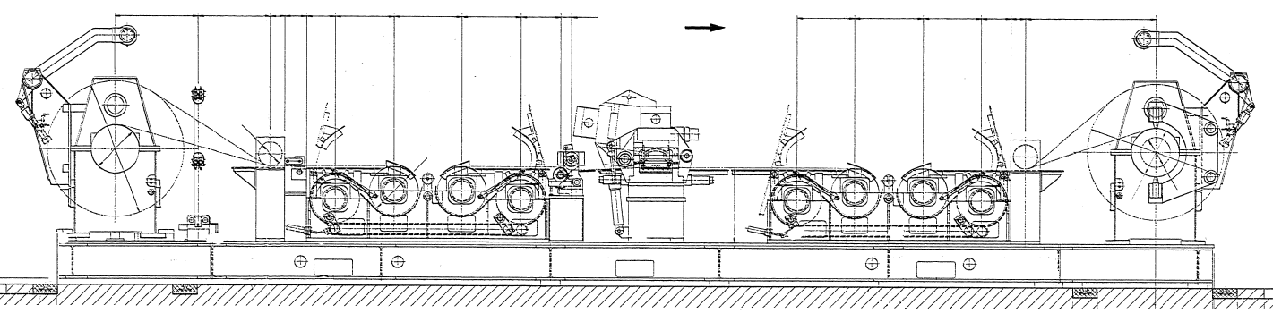 Corrective levelers straighten thinner materials and have bank-type adjustment of work rolls. They are also equipped with multiple flights of backup rolls. In order to correct minor strip shape defects, roll bending is similarly made possible by adjusting the backup flights.