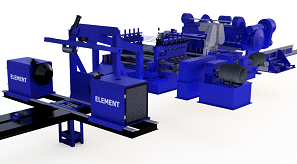 Element Machinery has supplied cut-to-length lines handling thicknesses from 0.015″ (0.4 mm) to 1″ (25.4 mm) and strip widths from 24″ (635 mm) to 120″ (3048mm).