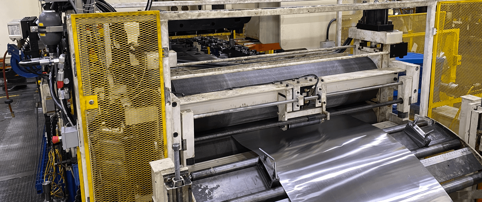 A press feed line or entry section is used to feed processing machinery such as presses, shears, roll forming equipment or rolling mills with coiled metals. These lines typically consist of incoming coil handling equipment (such as a coil ramp or coil car), peeling machines, an uncoiling machine and a machine to remove flatness defects such as “coil set”. Element Machinery has supplied press feeding lines handling thicknesses from 0.015″ (0.4 mm) to 1″ (25.4 mm) and strip widths from 24″ (635 mm) to 120″ (3048 mm).